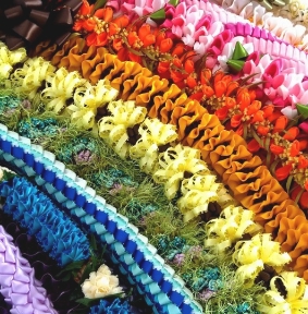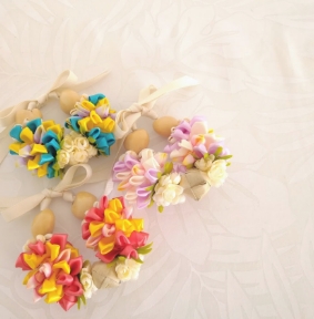 Hawaiiの花の首飾り”Lei”をリボンで作ります。HOKU CRAFT(本部Hawaii州)公認インストラクターが丁寧に指導いたしますので初めの方でも安心して受講できます。